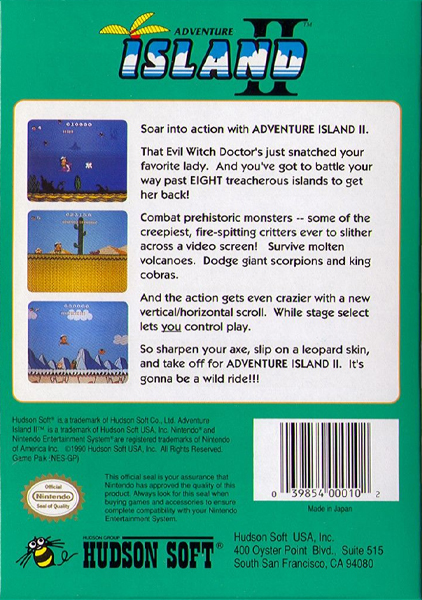 Adventure Island II is a side-scrolling platform game for the Nintendo Entertainment System that came out in 1991. It was made by Now Production and published by Hudson Soft. It is the second game in the series for the NES and the sequel to Adventure Island.