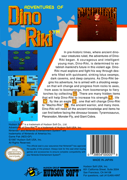 THE ADVENTURES OF DINO RIKI VIDEO GAME Classic Nintendo System CARTRIDGE NES HQ