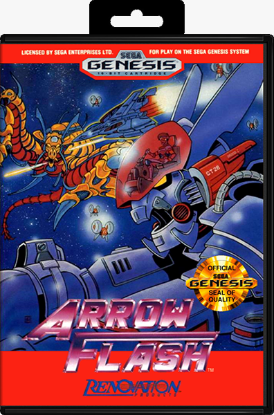 Arrow Flash (Japanese: ????????, Hepburn: Ar? Furasshu) is a scrolling shooter video game developed by Sega and published by Sega in Japan and Europe and by Renovation Products in the United States for the Sega Mega Drive/Genesis in 1990. The game's main character pilots a prototype transformable fighter-mecha left from her grandfather to fight against an alien attack on humankind. The game is mostly a horizontal shooter, with one down scrolling stage.