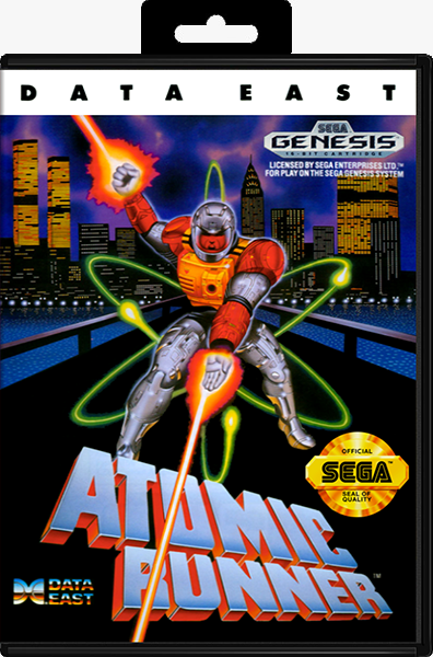 One windy day, there was an explosion at a nuclear power station, causing heavy doses of radiation to be poured over many people. One of these people was a coal miner named Chelnov. When he survived the deadly accident, he was possessed with abnormal powers. Having realized this, he decided to act in the cause of justice. He is determined to escape the Eastern Bloc country he called home and run and jump across the world to finish in the US. What distinguishes Chelnov: Atomic Runner from other platform games is its use of forced scrolling. This occurs when the screen moves continuously from left to right, forcing players to negotiate the game's many obstacles and enemies without controlling Chelnov's speed of progress. Enemies attack from left, right, above, and below, and Chelnov can switch the direction he's facing to attack enemies that are behind him. Some enemies in the game carry different types of weapons and power-ups, and when they are shot at, the power-ups drop to the ground and can be picked up. While the level design and enemy placement is identical in the later released Genesis (and subsequently Wii) version, the graphics have been significantly changed: now each level is based on a ancient human civilization and the enemies (including bosses) are replaced. Also all references to atomic explosions have been removed from the background story. Now Chernov is the son of a scientist. The evil Deathtarians, who claim to be the original population of the Earth and want to control this planet, murdered his father and abducted his sister. Chelnov takes a special suit made by his father, which give him super-human powers and make him an "Atomic Runner". The Deathtarians caught and imprisoned him, but he broke out of the prison and is now on the run...