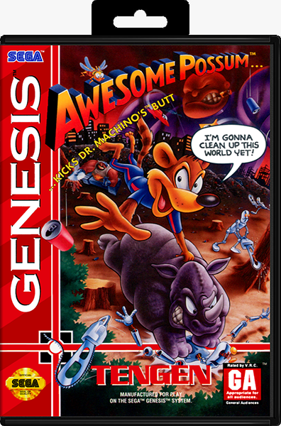 Awesome Possum... Kicks Dr. Machino's Butt is a video game created by Tengen for the Sega Mega Drive/Genesis that was released in early 1993. It also had many lines of digitized speech, unusual for its time, a feature with which the game was marketed. The box also states "it is an excellent educational game for all ages".