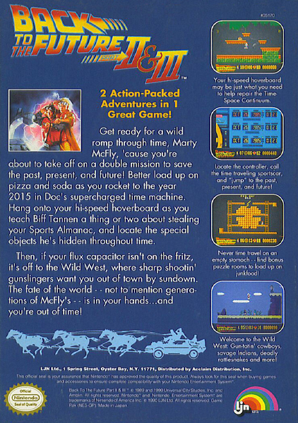 Back to the Future Part II & III is a 1990 video game for the Nintendo Entertainment System based on the second and third films in the Back to the Future trilogy. The game was produced by Beam Software and published by Acclaim Entertainment under their LJN label.