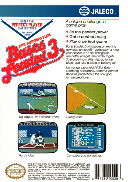 Baseball video game Bases Loaded 3, also known as MoePro! Yaky '90 Kand Hen when it was launched in Japan in 1990 for the Nintendo Entertainment System, was developed and published by Jaleco. This is the third entry in the Bases Loaded video game series.