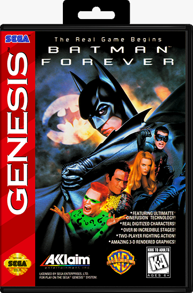 Batman Forever is an action, arcade and fighting game developed by Probe Entertainment and Acclaim Cheltenham. It was originally released in 1995. It was published by Acclaim Entertainment. The game is rated as "Meh" on RAWG. Batman Forever is available on PC, SNES, Game Boy and Game Gear.