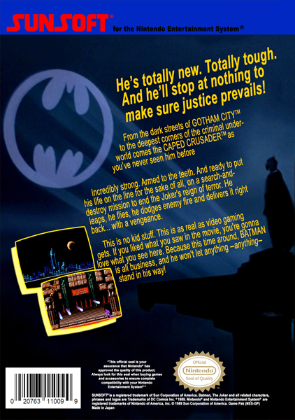Sunsoft's Batman: The Video Game is a collection of platform games for the Nintendo Entertainment System and Game Boy that are partly inspired on the 1989 film of the same name. Despite having the same title, each game is distinct.