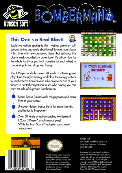 Bomberman II is a maze video game released in 1991 by Hudson Soft for the Nintendo Entertainment System. In Europe, the game was known as Dynablaster.