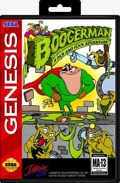 Boogerman: A Pick and Flick Adventure is a 2D platform video game created by Interplay Productions and released for the Sega Mega Drive/Genesis in 1994 and later on the Super Nintendo Entertainment System (SNES) in 1995. The Genesis version was also released on the Wii Virtual Console in North America on November 24, 2008 and in Europe on December 12, 2008. The game's lead character also made a cameo appearance as a playable character and the rival of Earthworm Jim in Interplay's ClayFighter 63?.