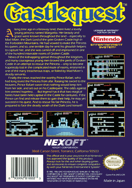 Castlequest (known in Japan as Castle Excellent) is an adventure/puzzle-hybrid video game. It was developed and published by ASCII Corporation in 1985 for the FM-7, PC-88, and Sharp X1. Additional versions followed in 1986 for the Famicom and MSX, and was subsequently released in 1989 for the NES in the United States by Nexoft Corporation.