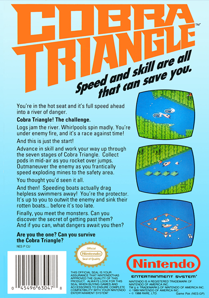 Cobra Triangle is a 1989 racing, vehicular combat video game developed by Rare and released by Nintendo for the Nintendo Entertainment System. The player controls a weapon-equipped speedboat through 25 levels.