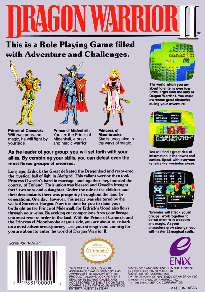 Dragon Quest II: Luminaries of the Legendary Line, originally named Dragon Warrior II in North America, is a role-playing video game developed by Chunsoft and released by Enix in 1987 for the Nintendo Entertainment System.