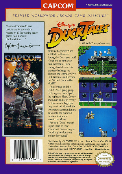 DuckTales is a Capcom platform game based on the Disney animated television series of the same name. It was first released in North America in 1989 for the Nintendo Entertainment System before being ported to the Game Boy in 1990.