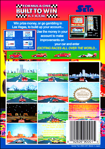 Formula One: Built to Win is a 1990 racing video game for the Nintendo Entertainment System developed by Winky Soft and published by SETA Corporation.