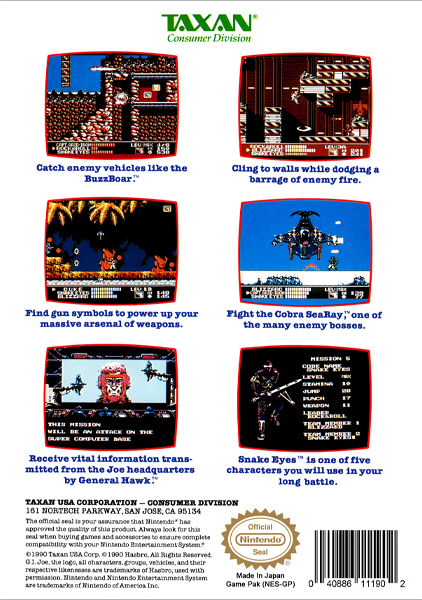 G.I. Joe: A True American Hero is a 1991 run and shoot game for the Nintendo Entertainment System produced by Taxan and based on the same-named toyline. Ken Lobb produced the game, which was developed by the same Japanese company that subsequently became KID. G.I. Joe: The Atlantis Factor, a sequel produced by the same team, was released the following year, but was published by Capcom when Taxan went out of business.