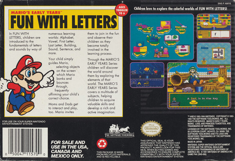 Mario\'s Early Years Fun With Letters Super Nintendo SNES Box ONLY with Protector