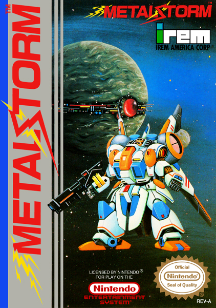 Metal Storm is a Nintendo Entertainment System action-platform video game developed by Tamtex and released by Irem. The plot begins in 2501, when a laser weapon at a defensive base on Pluto malfunctions and begins destroying the Solar System.
