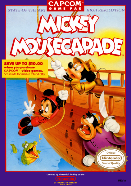 Mickey Mousecapade, released in Japan as Mickey Mouse: Adventures in Wonderland, is a platform video game developed and published by Hudson Soft originally in 1987 for the Family Computer in Japan. In the United States, Capcom released the game on the Nintendo Entertainment System in 1988.