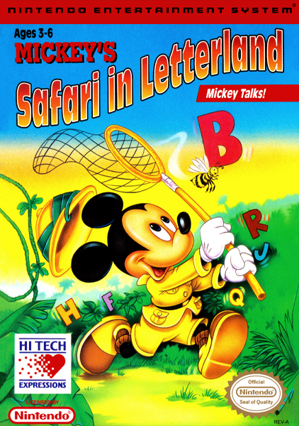 Mickey's Safari in Letterland is a 1993 instructional video game for the Nintendo Entertainment System starring the popular cartoon character Mickey Mouse. In this game, Mickey must visit six different areas to gather all of the letters of the alphabet for his museum. There are three difficulty levels.