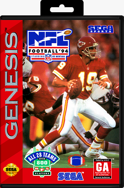 NFL Football '94 Starring Joe Montana, released as simply NFL Football '94 in Japan is a 1993 Sega Mega Drive/Genesis game which has a realistic running commentary that runs while the player engages himself in exhibition, regular season, or playoff action. It is fifth in the Joe Montana Football series and the fourth to be developed by BlueSky Software.