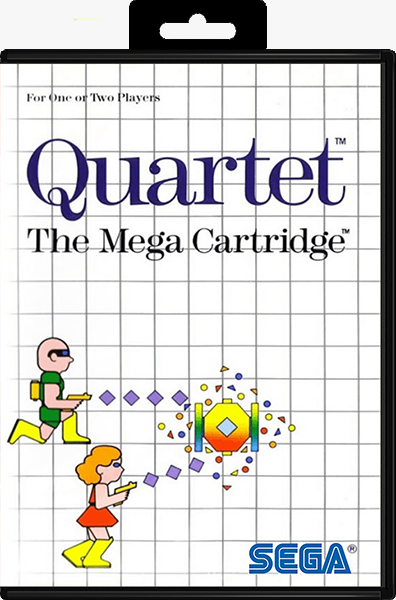 If you hate aliens, you'll love Quartet! You see, space colony Number Nine is being threatened by an invasion of the most dangerous kind. Alien attack. And the place is crawling with them. These vicious, vile parasites have even managed to confiscate the casket of the late great Queen Cynthia. It's your job to exterminate these treacherous creatures. To return the casket to its hallowed tomb. And save the colony from certain collapse. You'll have special equipment to help you along the way. Like a supersonic jet engine, a special bomb, missiles and a magic key. But time is running out. So don't just stand there thinking about it. Get on it. And get rid of this gruesome group. For good!