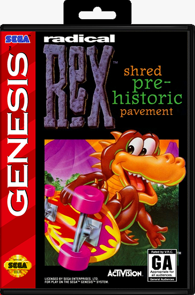 Radical Rex (released as Baby T-Rex on the Game Boy in Europe) is an action platforming video game released in 1994 in North America, Europe and Australia. It was published by Activision and developed by Australian game studio Beam Software for the Super NES, Genesis, and Sega CD. The game stars Radical Rex, a skateboarding, fire-breathing Tyrannosaurus rex who must save his land, and his girlfriend Rexanne, from an evil magician named Sethron. In his way are dinosaurs, sea creatures, and other monsters.