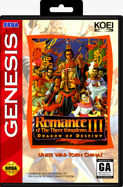 Romance of the Three Kingdoms III: Dragon of Destiny is the third in the Romance of the Three Kingdoms series of turn-based strategy games produced by Koei and based on the historical novel Romance of the Three Kingdoms. This version was released in Asia and North America for the PC, Super Nintendo Entertainment System and Mega Drive/Genesis. It is also the only SNES game to be fully translated into Chinese.