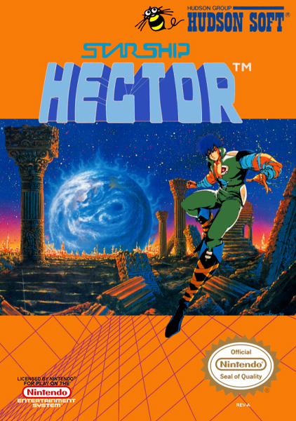 Starship Hector is an alternating vertically and horizontally scrolling shooter developed and published by Hudson Soft for the Nintendo Entertainment System. The player's spacecraft, like Xevious, has two modes of fire: one for flying foes and one for ground-based enemies.