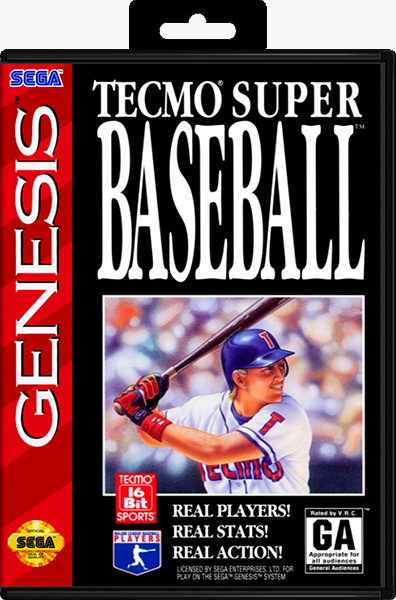 Tecmo Super Baseball is a professional baseball video game that was released in 1994 for the Super NES and Sega Mega Drive/Genesis gaming systems. It features all 28 MLB teams that existed at the time. However, the only license the game has is the MLBPA license. This means that while the game does feature actual players, there are no team names or logos. The teams wear uniforms without logos and are only named by their city (the teams that share the cities of Chicago and New York are separated by having either an A or N after their name, denoting their league). The main menu theme is a cover of "Take Me Out to the Ball Game".