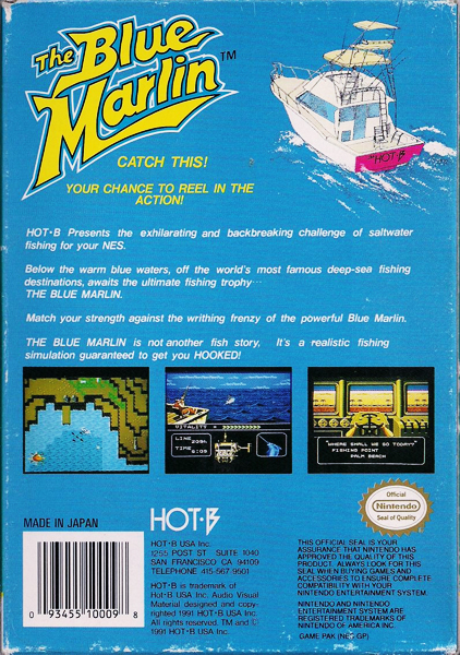 The Blue Marlin is a fishing video game for the Nintendo Entertainment System that was developed and published by Hot B in 1991. The goal of The Black Bass for MSX and The Black Bass for NES, as with its predecessors, is to win a competition by catching the largest fish in the time permitted.