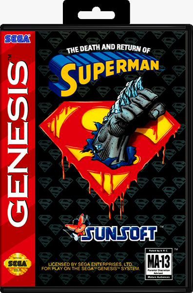 The Death and Return of Superman Sega Genesis Game, cover, and cartridge.