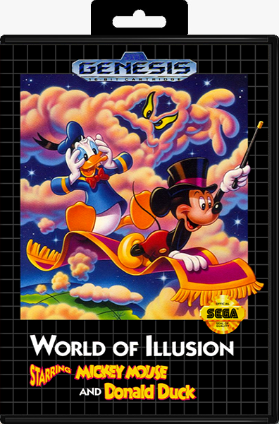 World of Illusion Starring Mickey Mouse and Donald Duck, released in Japan as I Love Mickey & Donald: Fushigi na Magic Box is a platformer video game developed by Sega AM7 and produced by Sega for the Sega Genesis. The game was released in North America on December 17, 1992, in Japan on December 18, 1992 and in Europe on December 19, 1992. It is part of Sega's Illusion series of Mickey Mouse games.